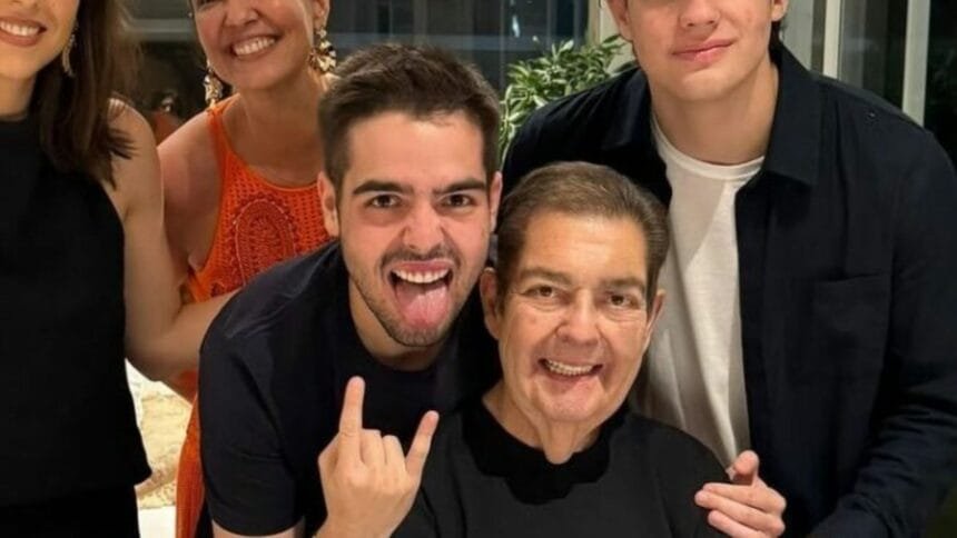 Faustão apareceu em uma imagem rara publicada no Instagram e posou ao lado da família durante a celebração dos 24 anos de casamento com Luciana Cardoso. A reunião ocorreu em clima íntimo, com a presença de João Silva e Rodrigo. O apresentador surgiu sorridente na foto, demonstrando emoção ao marcar a data especial. Na legenda da foto, João escreveu: “Comemorando os 24 anos de união das pessoas que mais amo nesta vida!”, reforçando o ambiente de afeto entre todos.